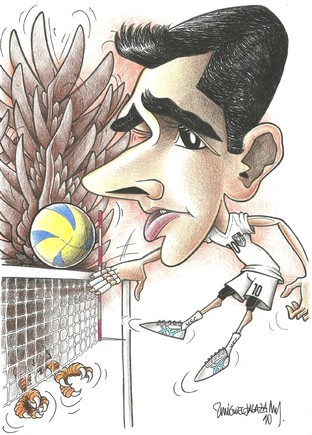 (caricatura publicada na brochura de apresentação do plantel, produzida pela Secção de Voleibol do clube)